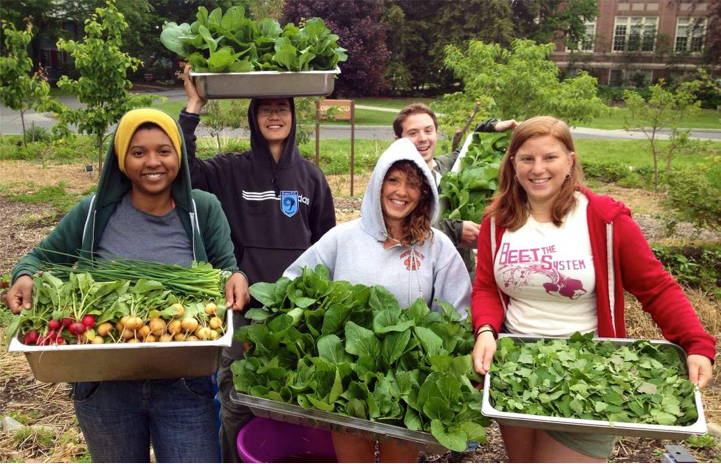 Sinh viên thu hoạch rau củ tại vườn trường UMass @UMass, 2019