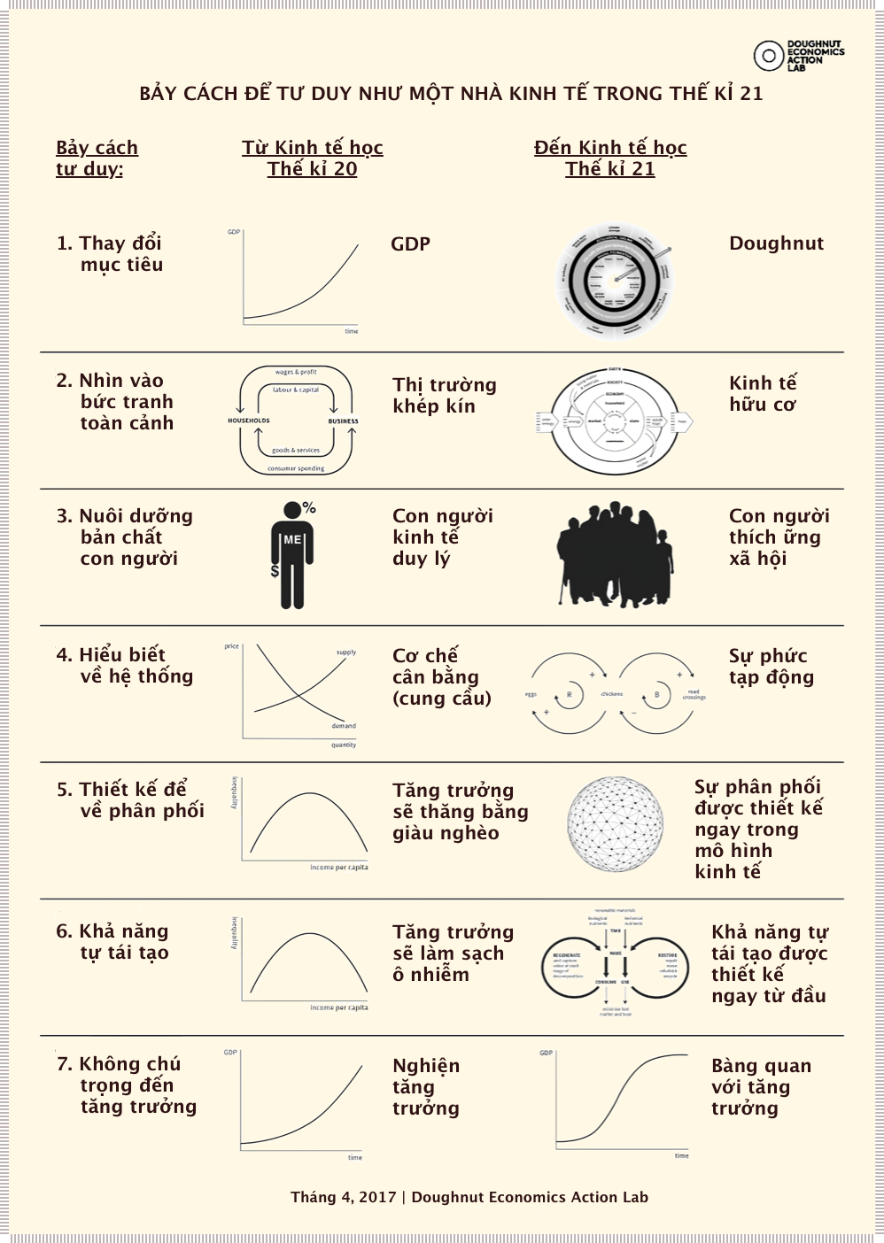 Nếu mục tiêu của thế kỷ 21 là đáp ứng nhu cầu của tất cả mọi người sử dụng các phương tiện sống có thể trong phạm vi của hành tinh—nói cách khác, đi vào bên trong hình khuyên—thì làm thế nào nhân loại có thể đạt được điều đó? Chắc không phải là với tư duy kinh tế của thế kỷ trước.