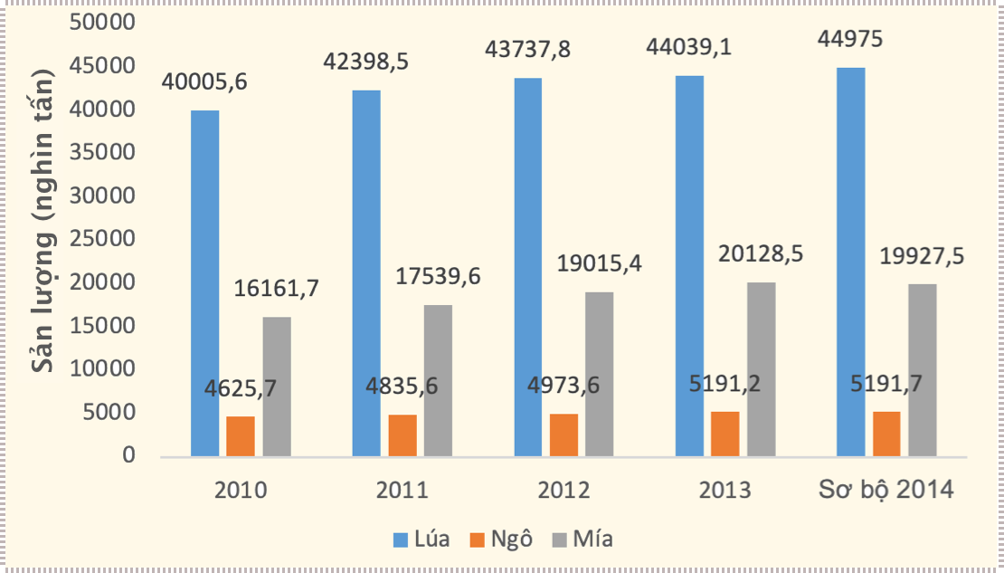 Hình 1: Sản lượng một số loại cây trồng năm 2010-2014.