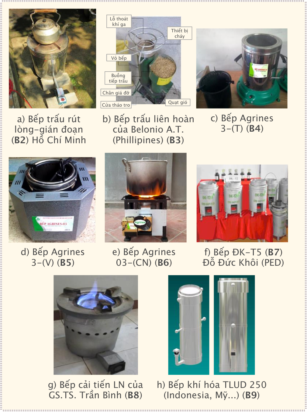 Hình 3: Các kiểu bếp đun cải tiến ở Việt Nam và trên thế giới