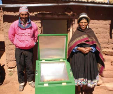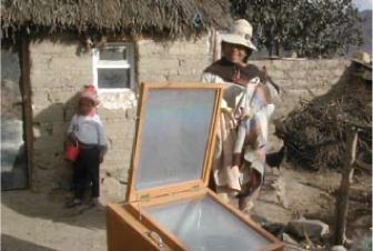 Các loại bếp hộp và bếp parabol sản xuất trong nước cũng được cung cấp cho các gia đình. Mặc dù bếp parabol mạnh hơn, nhưng bếp hộp tỏ ra dễ vận hành hơn và ít bị ảnh hưởng bởi gió mạnh thường gặp trên cao nguyên Altiplano. Ngoài các tấm phản xạ và các bộ phận thuộc thiết bị theo dõi ánh sáng chạy bằng điện, tất cả các bếp có thể được sản xuất tại địa phương bởi một hợp tác xã sau khi hoàn thành khóa đào tạo liên quan.