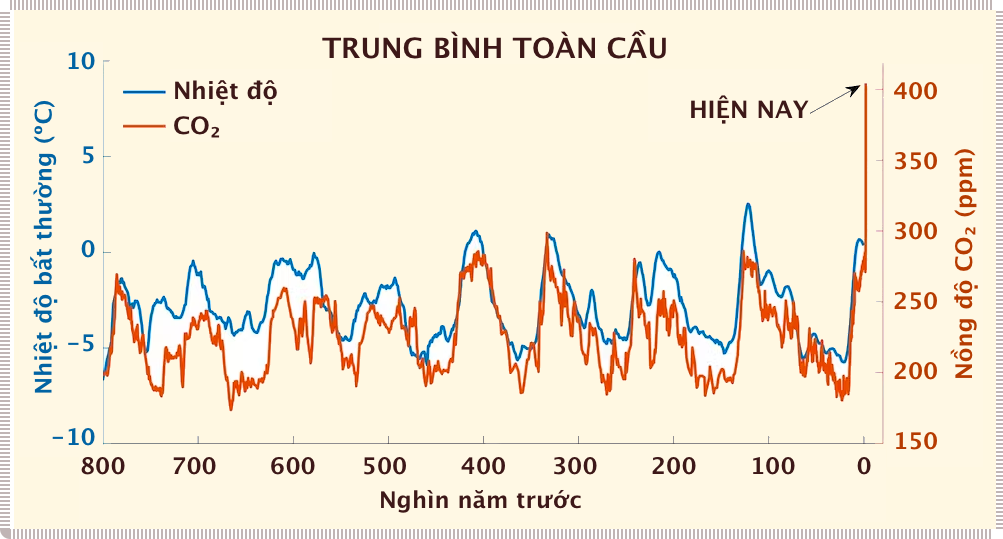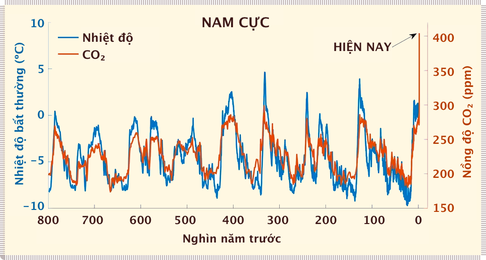 Vào giữa năm 2017, CO2 trong khí quyển hiện ở mức 409 ppm. Điều này hoàn toàn chưa từng có trong 800.000 năm qua.