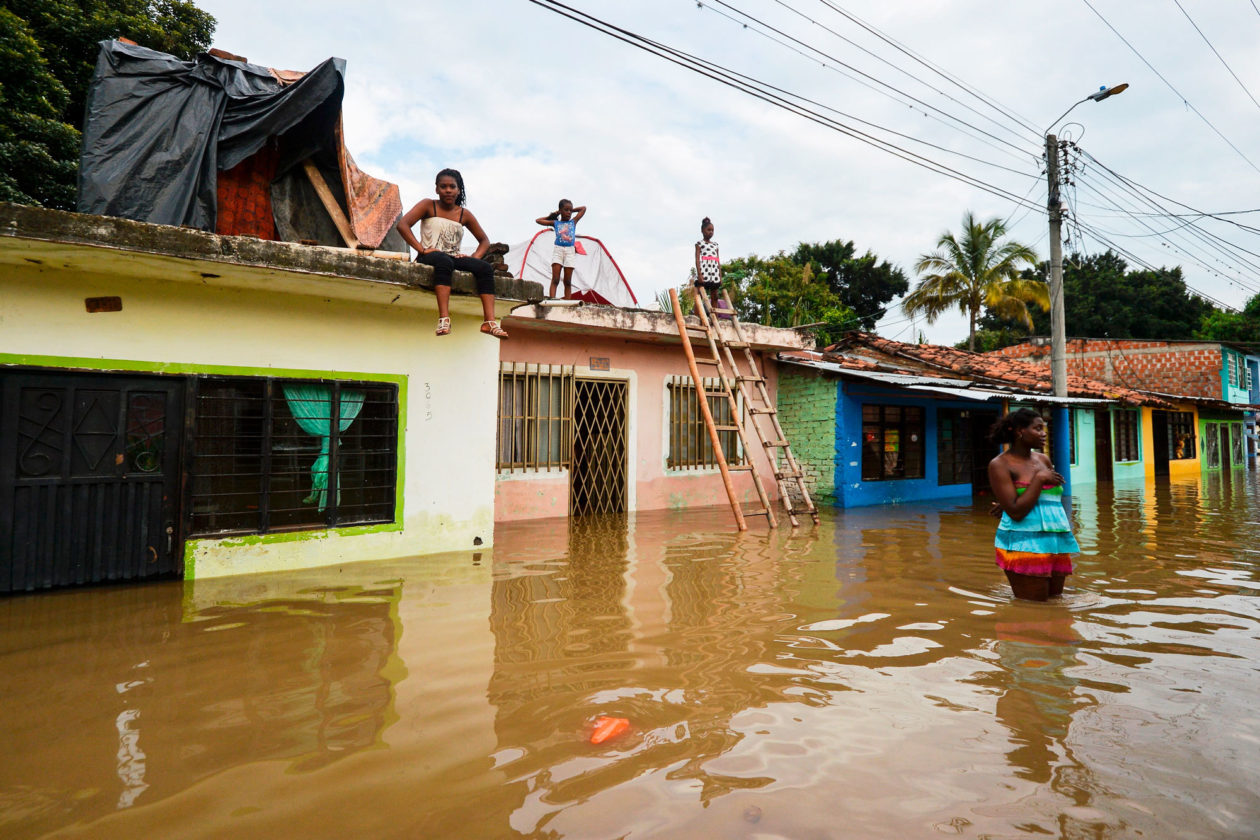Ở Cali, Colombia vào năm 2017, sau những trận mưa dữ dội gây ra bởi sự sông Cauca River tràn bờ. LUIS ROBAYO/AFP VIA GETTY IMAGES
